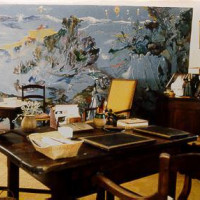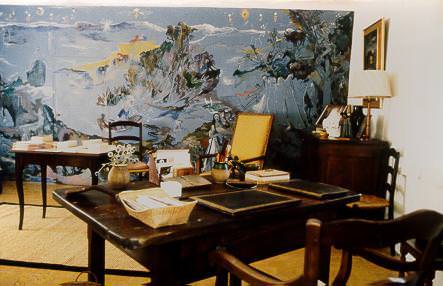 On accède à cette 'petite bastide' par un chemin de terre et d'herbes odorantes montant vers un jardin rustique fait de terrasses plantées d'oliviers, de chênes verts, de cyprès. Au rez-de-chaussée voisinent cuisine et salle de séjour, à l'extérieur un escalier de pierre conduit au bureau de l'écrivain où un des murs est occupé en totalité par une somptueuse fresque mythologique du peintre graveur Edy-Legrand.